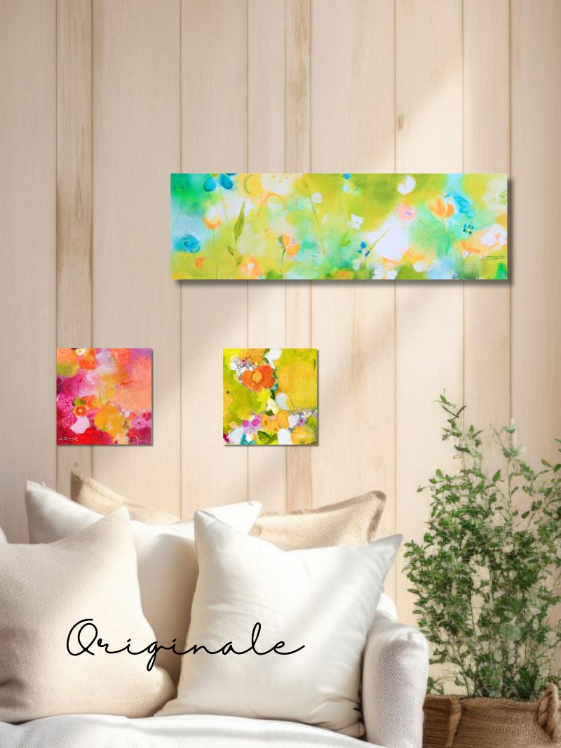 Der Frühling grüßt, der Sommer lockt… Blumen , Knospen und pures Sonnenlicht ist aus meinem Pinsel mit soviel Hingabe & Freude auf diese Leinwände geflossen.