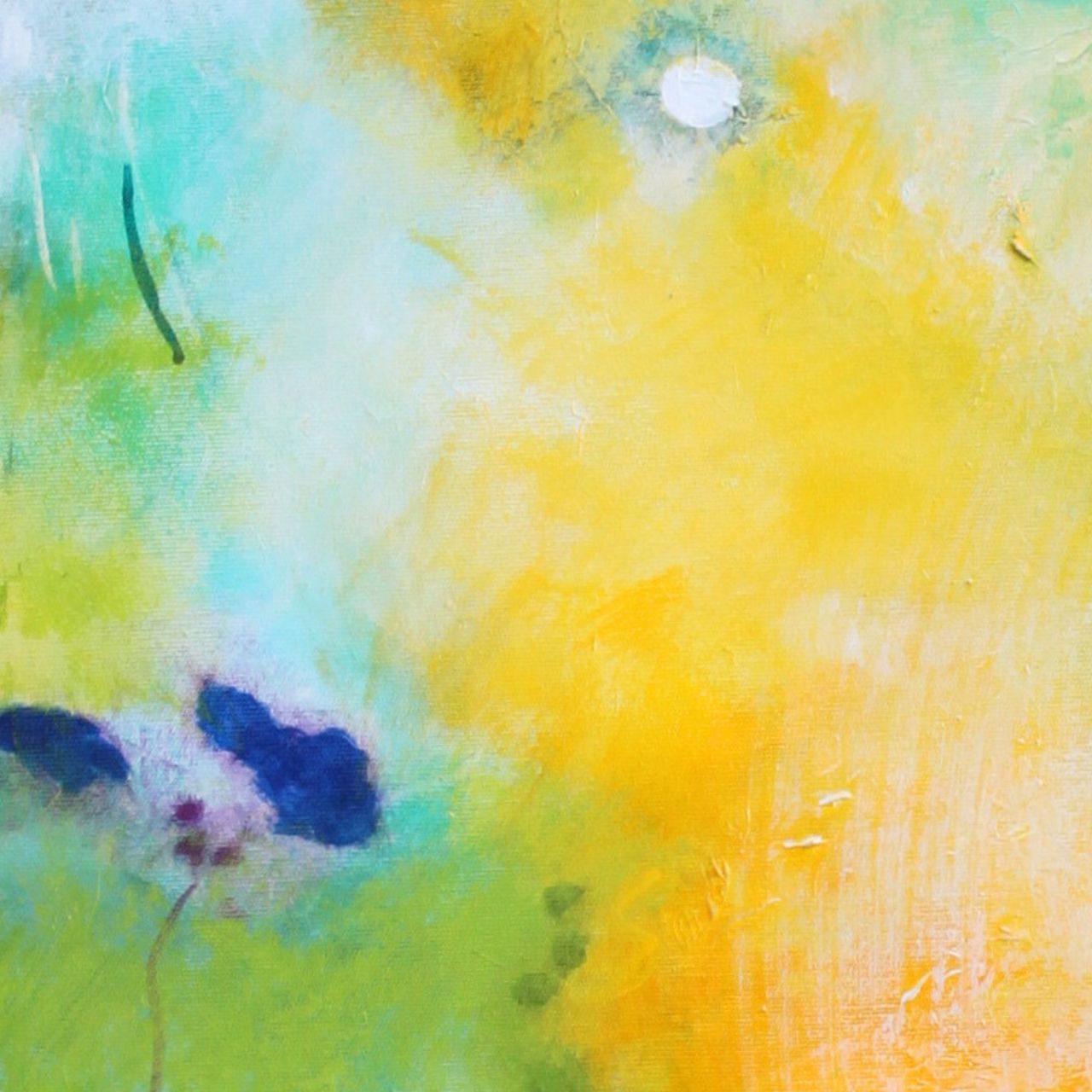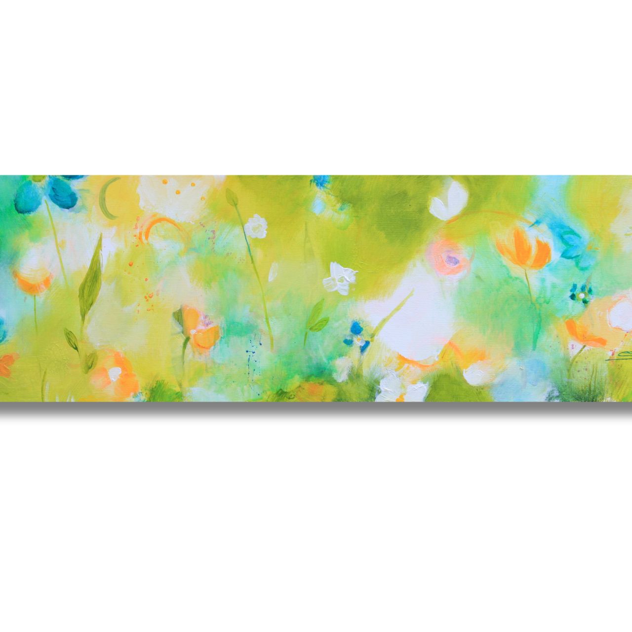 Vergnügte bin ich mit Pinsel und Farbe über Frühlingswiesen geschlendert. Habe hier und dort entdeckt, wie von Zauberhand zarte Blüten wachsen und wilde Gräser sprießen. Behutsam und voller Freude habe ich ihnen auf der Leinwand geholfen, geboren zu werden.